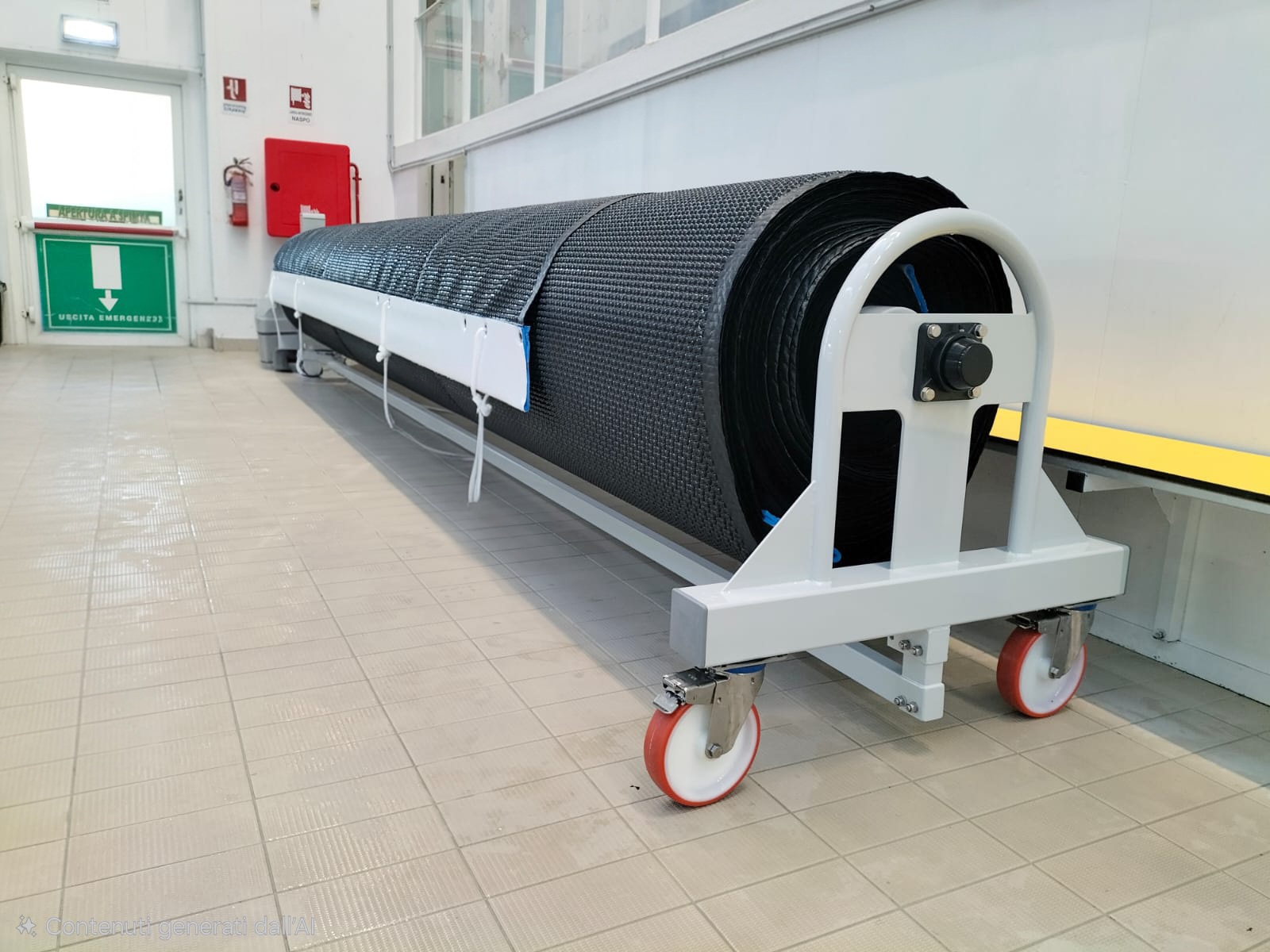 Los carros de bobinado móviles motorizados Aqua Roll están equipados con cuatro ruedas con freno, lo que garantiza un manejo estable y seguro. La estructura consta de un rodillo y soportes laterales de acero inoxidable AISI 316L, material que garantiza una gran resistencia a la corrosión y precisión en el funcionamiento. El sistema está accionado por un motorreductor de bajo voltaje, que proporciona un funcionamiento silencioso y seguro. Bajo pedido, el carro puede suministrarse con un acabado de pintura protectora y mando a distancia. También hay disponible una versión manual, ideal para requisitos más sencillos o entornos menos complejos.